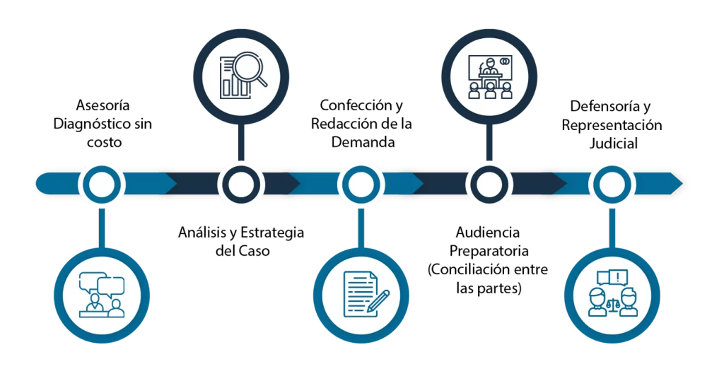 Con los más de 20 de años de experiencia de nuestras abogadas y diversos colaboradores, te podemos asegurar que nos hacemos cargo de todo el proceso de manera integral, paso a paso y liberándote de la mayor cantidad de trámites para GARANTIZAR tu bienestar y ganar el juicio.